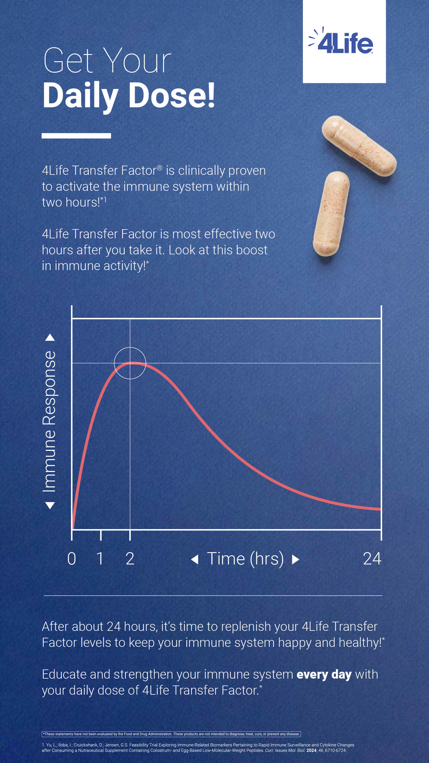 Ride the river of life with RioVida! This is the only antioxidant-rich immune shot in the world powered by 4Life Transfer Factor®: bioactive immune peptides clinically proven to activate the immune system within two hours.1 This superfruit shot also features superfruits like açaí, pomegranate, aronia berry, maqui berry, blueberry, and elderberry, blended together with vitamin C to form a delicious defense against naturally occurring free radicals. Just one serving daily gives you a full arsenal of immune and antioxidant defense that can support heart and brain health, energy levels, healthy cellular aging, and overall wellness.*